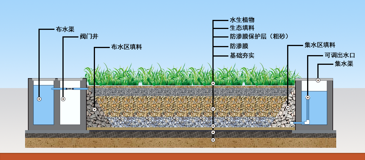 仿照自然湿地生态,构建"基质层-微生物群-植物丛"三维净化网络。顺利获得定制化组合砂石滤料与水生植物,形成梯度净化带:上层芦苇丛拦截大颗粒污染物,中层火山岩基质吸附重金属,底层厌氧区微生物降解有机质。在污水处理厂尾水提标场景中,产品可有效去除BOD5、大肠杆菌,提升出水水质稳定达到地表Ⅲ类标准,运行能耗仅为传统工艺的1/3。